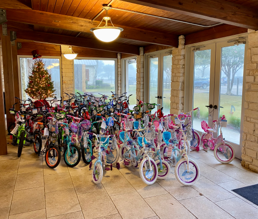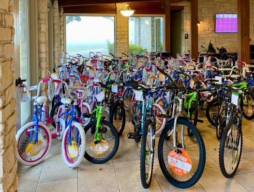 The bicycles you see in the pictures above are the result one person’s idea. Charles Bourgeois is one of my husband’s golfing buddies. He simply asked if anyone wanted to chip in to purchase a couple of bicycles to donate to Cypress Ministries, a local faith-based organization that supports those in need in our community. A desire to bring a little bit of happiness to a few families became larger than any one of them would have imagined.